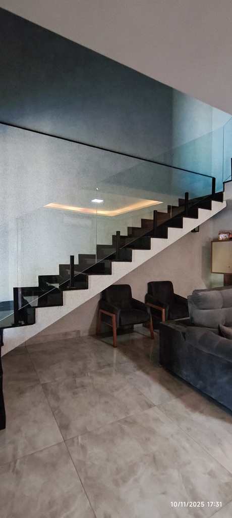 Banheiros: O sobrado conta com um banheiro social que atende os dormitórios e um banheiro externo, ideal para uso durante os momentos de descontração na área gourmet. Todos os banheiros possuem acabamentos de qualidade.